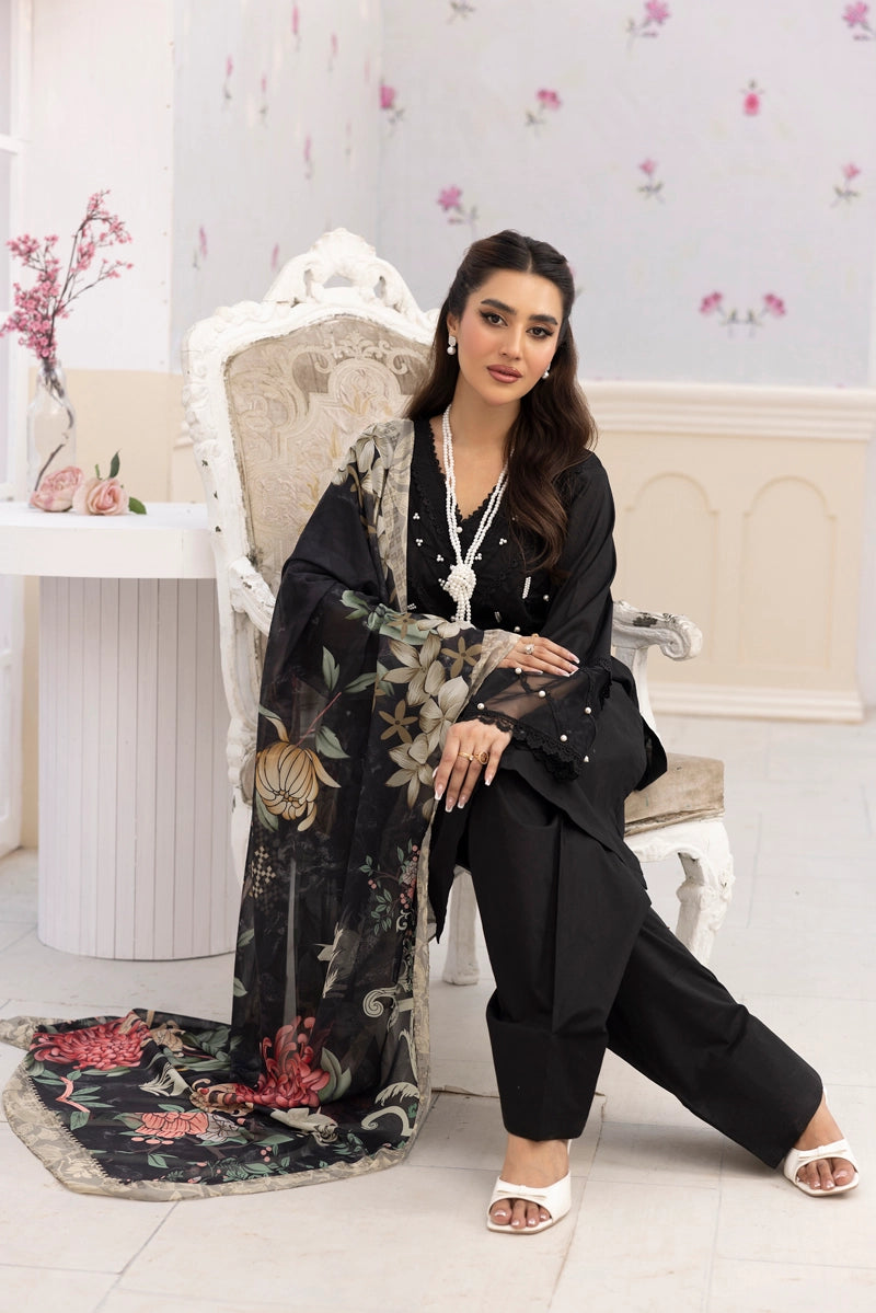 Product Code: Nakhra 3 Piece Black Suit with Digital Print Silk Dupatta PPD2501
